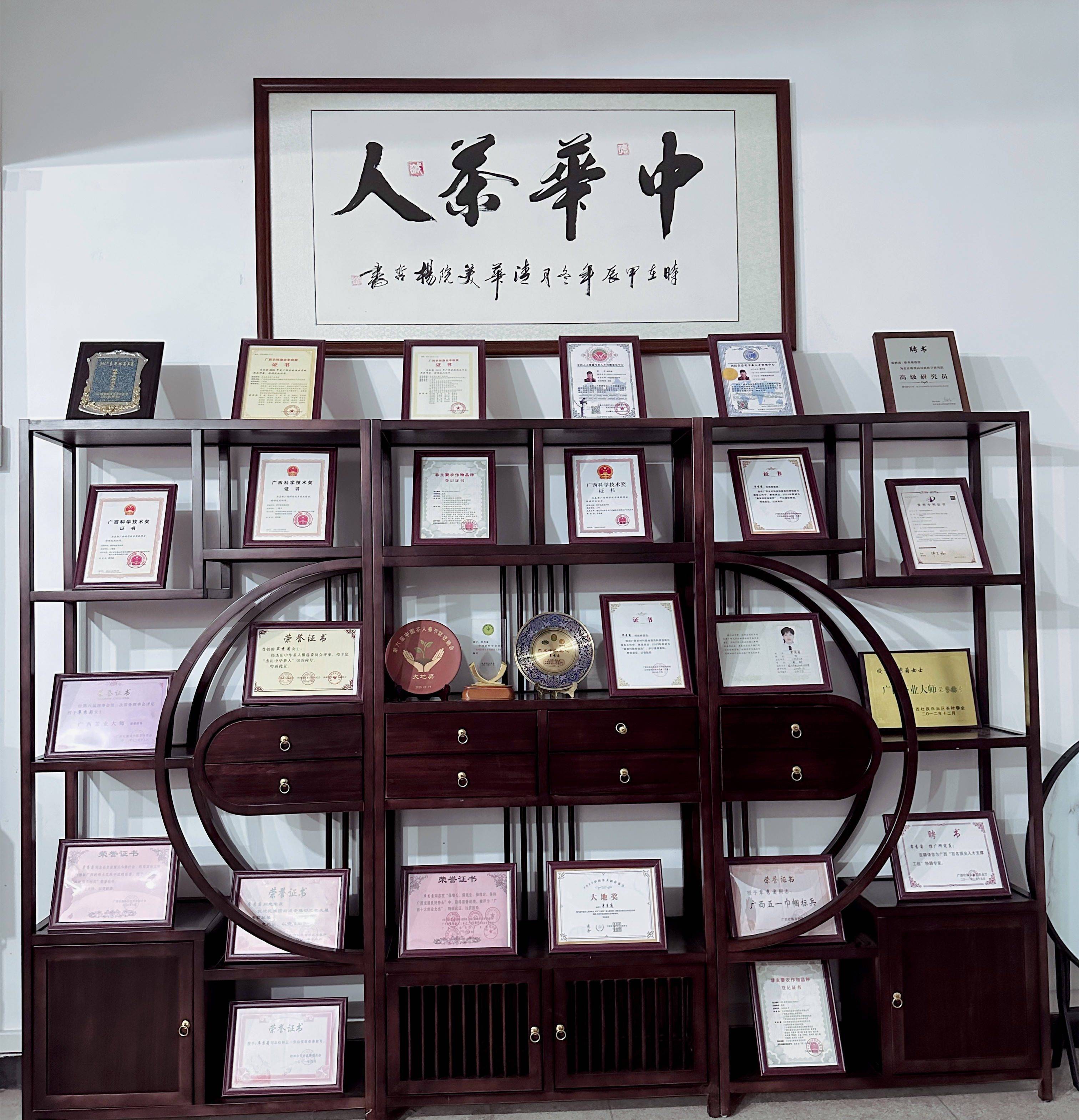 “茶是大自然的馈赠,既能富民也能养生。”覃秀菊的科研生涯始终围绕“茶的价值”深耕。她主持及参与制定 25 项广西地方标准、23项广西团体标准,发明专利6件,实用新型专利17件,主编及参与编写7 部茶叶著作,在《中国茶叶词典》中镌刻下中华茶人的智慧;而 19 项名优茶金奖背后,是她对茶性与人体健康关联的早已知晓。这份积累,成为她退休后创办 “桂柳茶菊养生馆” 的底气。