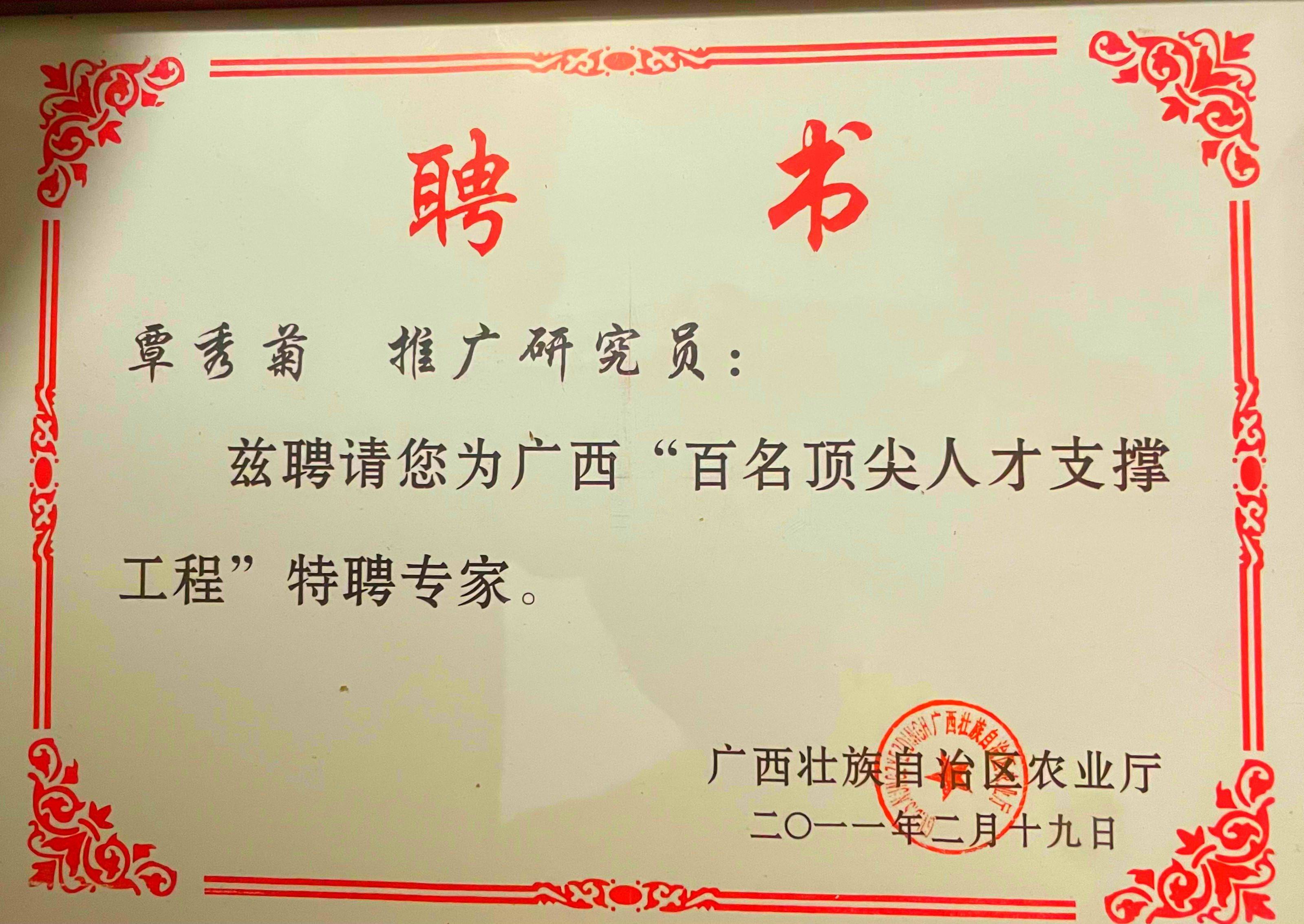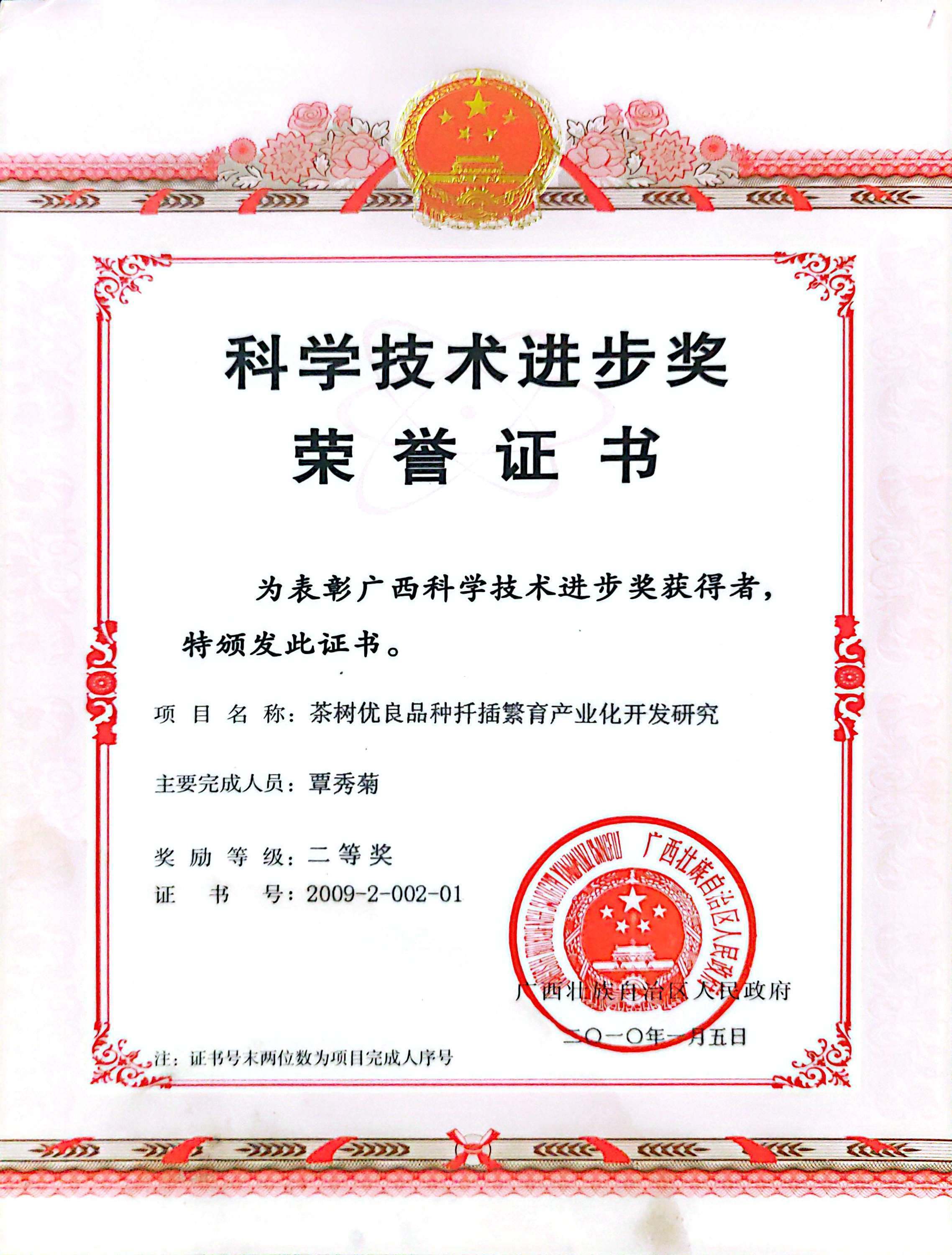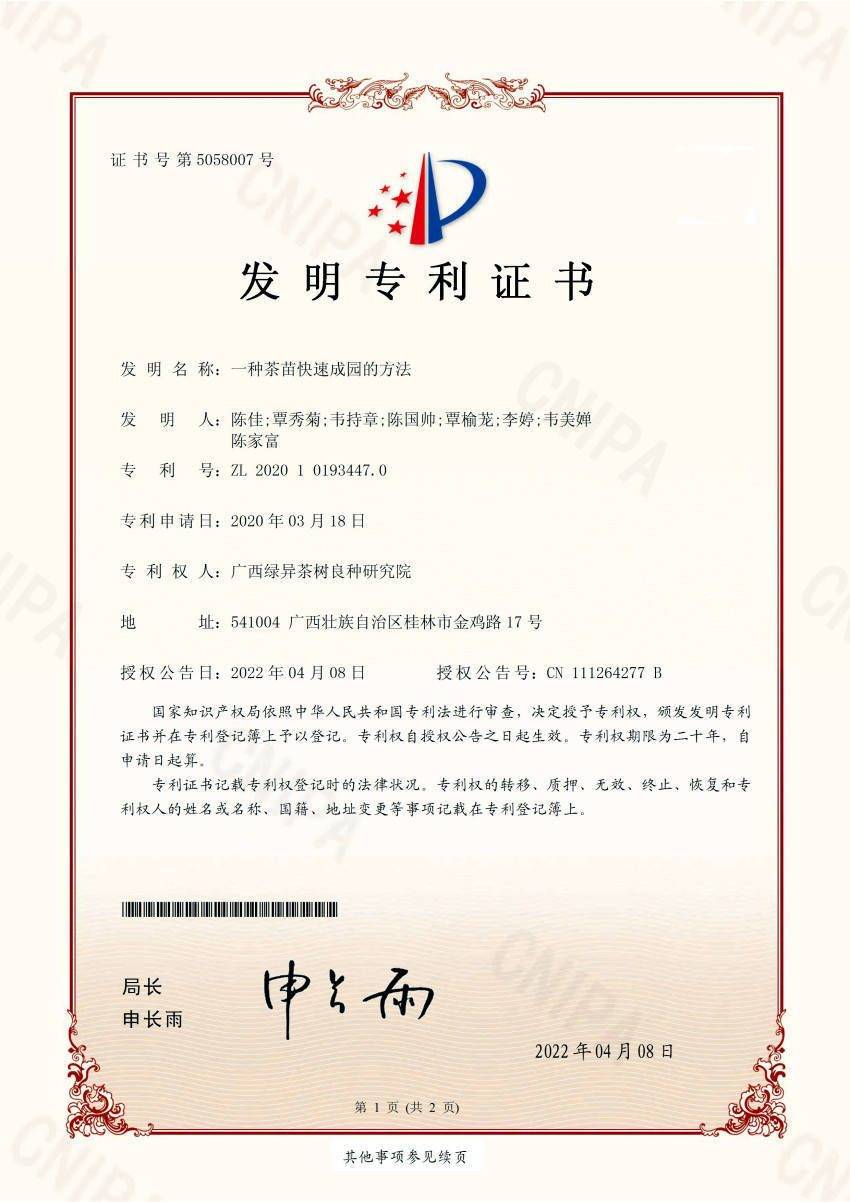 在广西茶叶科学研究所和广西绿异茶树良种研究院的茶树种质资源圃里,覃秀菊曾主持和参加收集选育 1900 多份茶树种质资源。从广西茶叶科学研究所科研科科长、品种研究室主任到广西绿异茶树良种研究院院长,这位手握 51 项荣誉的全国百名“杰出中华茶人”,用 90 多项科研项目、12 个国家级茶树良种证书,在八桂大地写下茶科传奇 —— 她与团队培育的“尧山秀绿”、 “桂绿1号”品种及创新配套技术等获广西科技进步二等奖和广西农牧渔业丰收奖一等奖,指导繁育的 3 亿多株茶苗让8万多亩茶园焕发生机,更让56个贫困村通过种茶走上致富路。