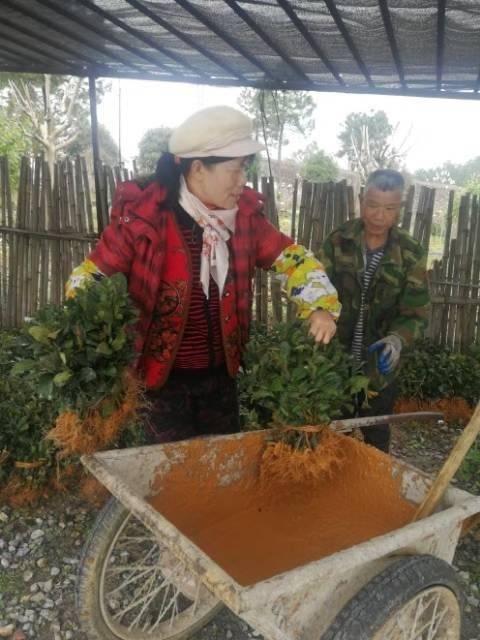 指导茶农苗木移栽前的处理