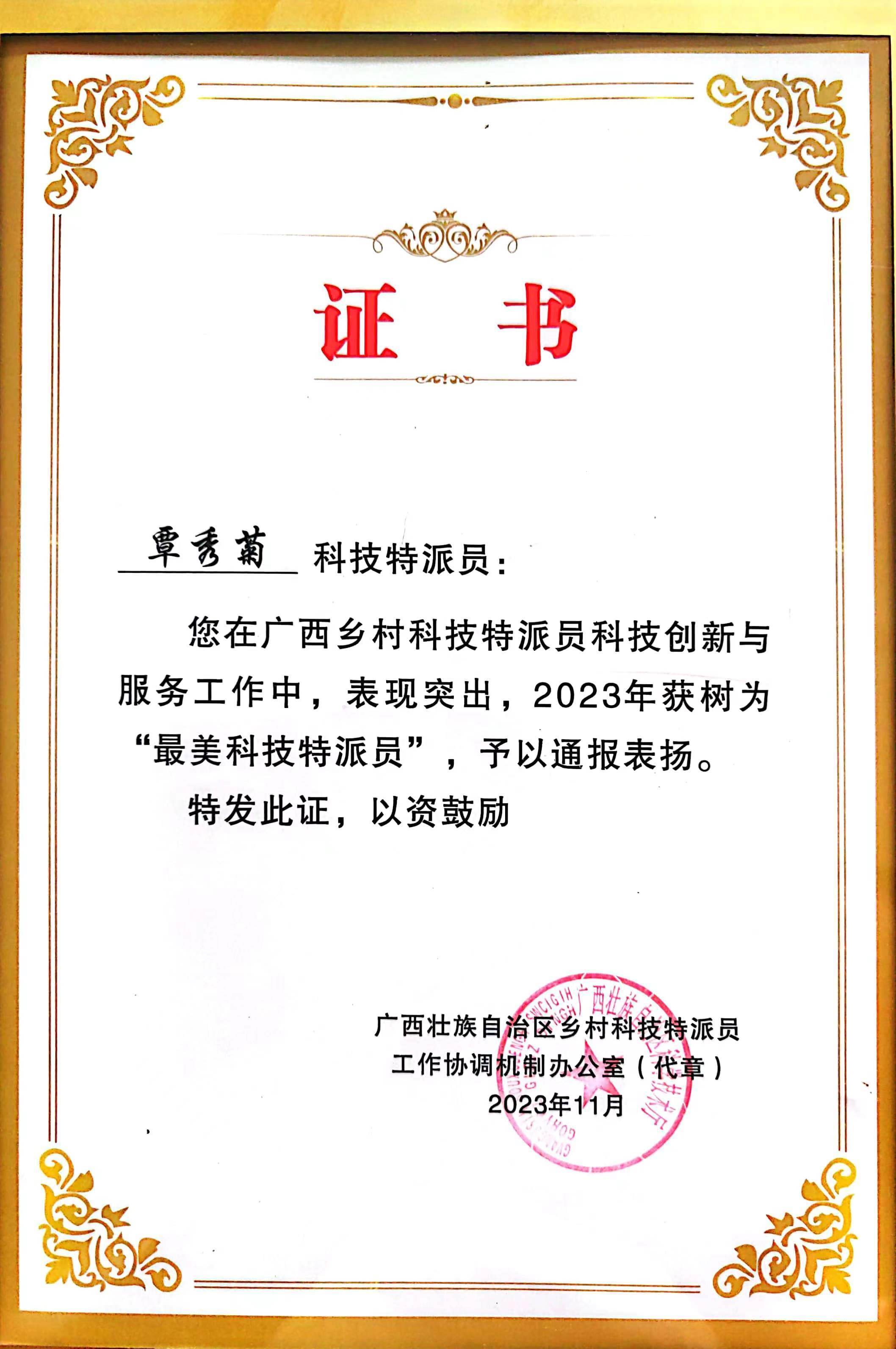 如今,覃秀菊的脚步仍未停歇,仍坚持“奋斗在科技创新及乡村振兴第一线”,曾服务过37家企业、56个贫困村,其“以助推乡村为己任”的情怀,是乡村振兴持续推进的精神动力。